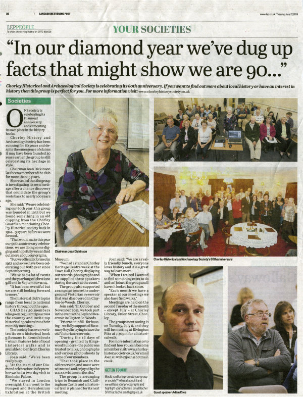 Chorley History and Archaeology Society has been running for 60