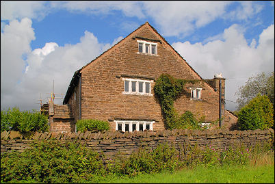 Holland Fold Farm is a grade 2 listed building. A unusual stone globe shows a date of 1680. |